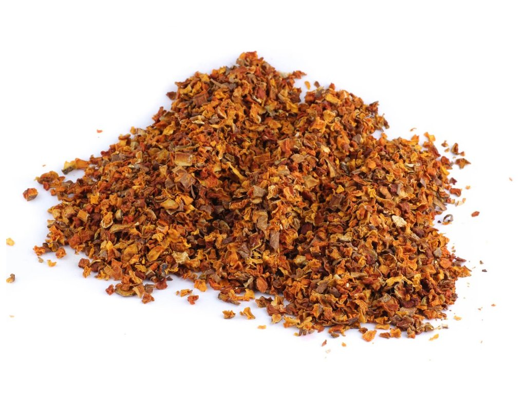 Sušená dýně má hnědo žlutou barvu a velmi příjemnou vůni, lehce připomínající sušená jablka.