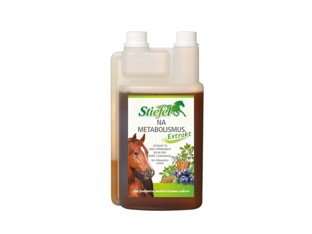 Stiefel Bylinný extrakt pro metabolismus je tekutý bylinný koncentrát navržený pro koně s nadváhou. Tento přípravek obsahuje směs čistě přírodních bylin, včetně pískavice řecké seno, lístků borůvčí, kopřivy, kokošky a skořice, které společně podporují metabolismus sacharidů, zejména oligosacharidů, což může napomoci ke snížení nadváhy. Pravidelným užíváním může přípravek podpořit kvalitní metabolický proces a přispět k zlepšení celkového zdravotního stavu koně.