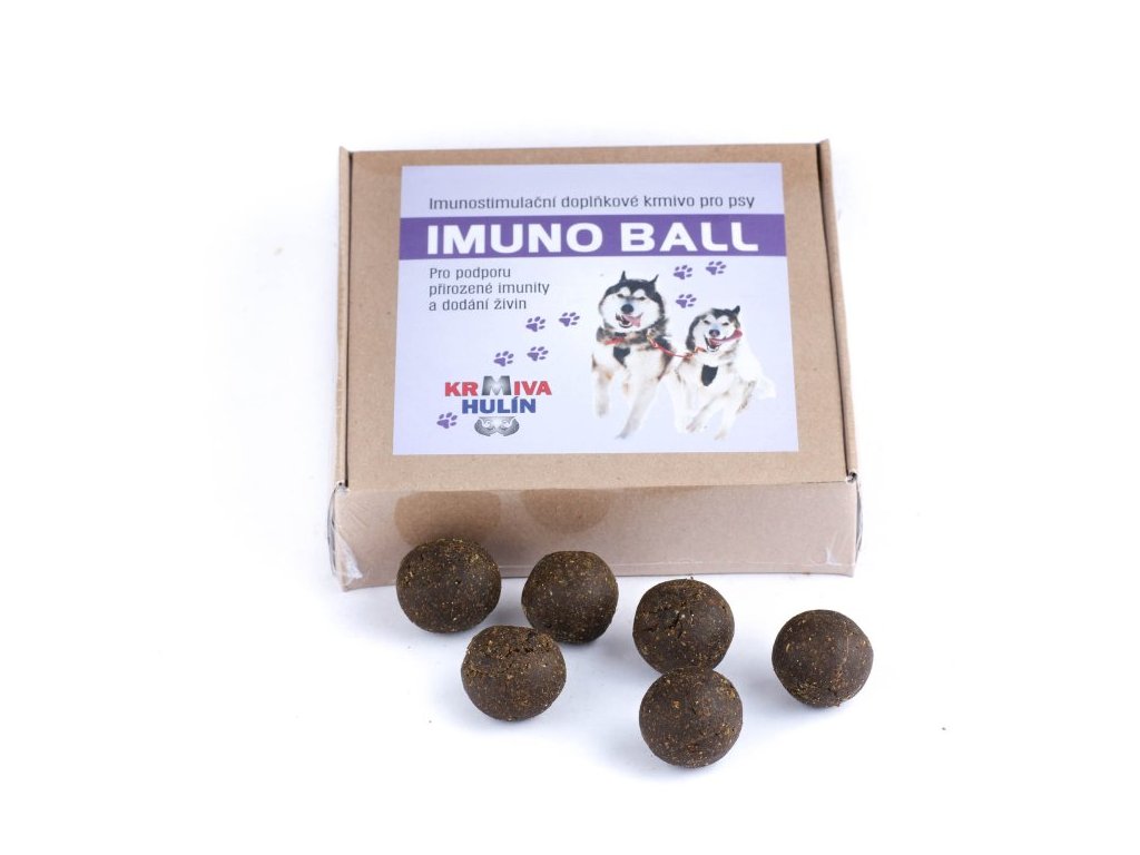 Imuno Ball jsme vyvinuli za účelem rychlé a snadné aplikace komplexu vysoce účinných látek psovi především při potřebě ochrany jeho zdraví v krizových situacích jako jsou náročné dlouhodobé závody v zimním období, intenzivní tréning, práce záchrannářských psů, těžká nemoc nebo operace, podvýživa, nalezenci či týraní psi. Imuno koule má pro psa velmi vysokou chutnost a sežere ji dle našich zkušeností i při velkém stresu. U malých plemen psů doporučuji kouli rozmáčknout a podávat po kouskách v průběhu dne.