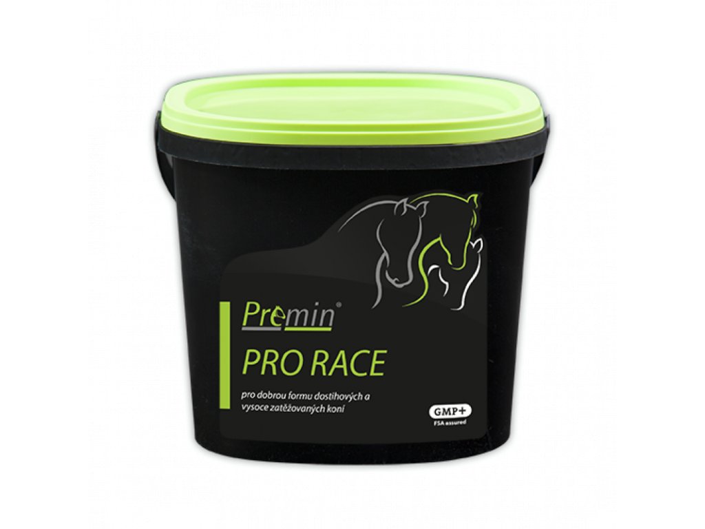 Minerální krmivo Premin® ProRace s obsahem kolagenu je určené především dostihovým koním a koním sportujícím ve všestrannosti, kdy dochází k enormní zátěži organismu a opotřebování pohybového aparátu. Obsažený kolagen přispívá ke zdravým kloubům a šlachám a zároveň napomáhá hojení sliznice žaludku u koní trpících žaludečními vředy. Minerální krmivo obsahuje celou škálu vitamínů B, esenciální aminokyseliny Lysin a Metionin a všechny potřebné makro- i mikroprvky.