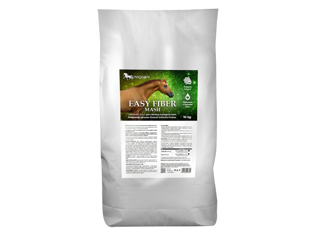 Easy Fiber Mash je jednoduchý, velmi chutný, dietetický mash s více zdroji rozpustné a nerozpustné vlákniny. Je vhodný pro všechny kategorie koní a pony, nejlepší službu ale odvede u koní: